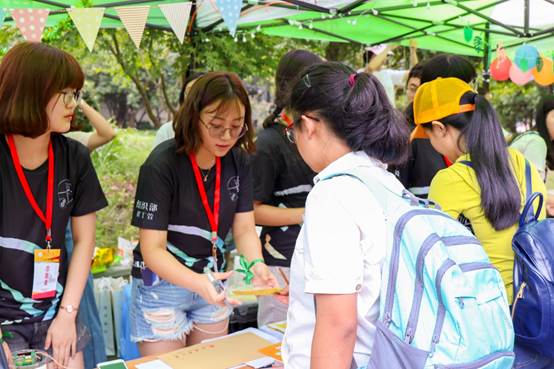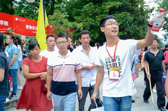 团委学生会的同学们身着统一会服,由各班同学组成的志愿者团队佩戴志愿者工作牌,每一位志愿者的手腕上绑有一根绿丝带,象征资环的热情活力,大家以饱满的热情和有条不紊的节奏迎接2017届新生的到来。
