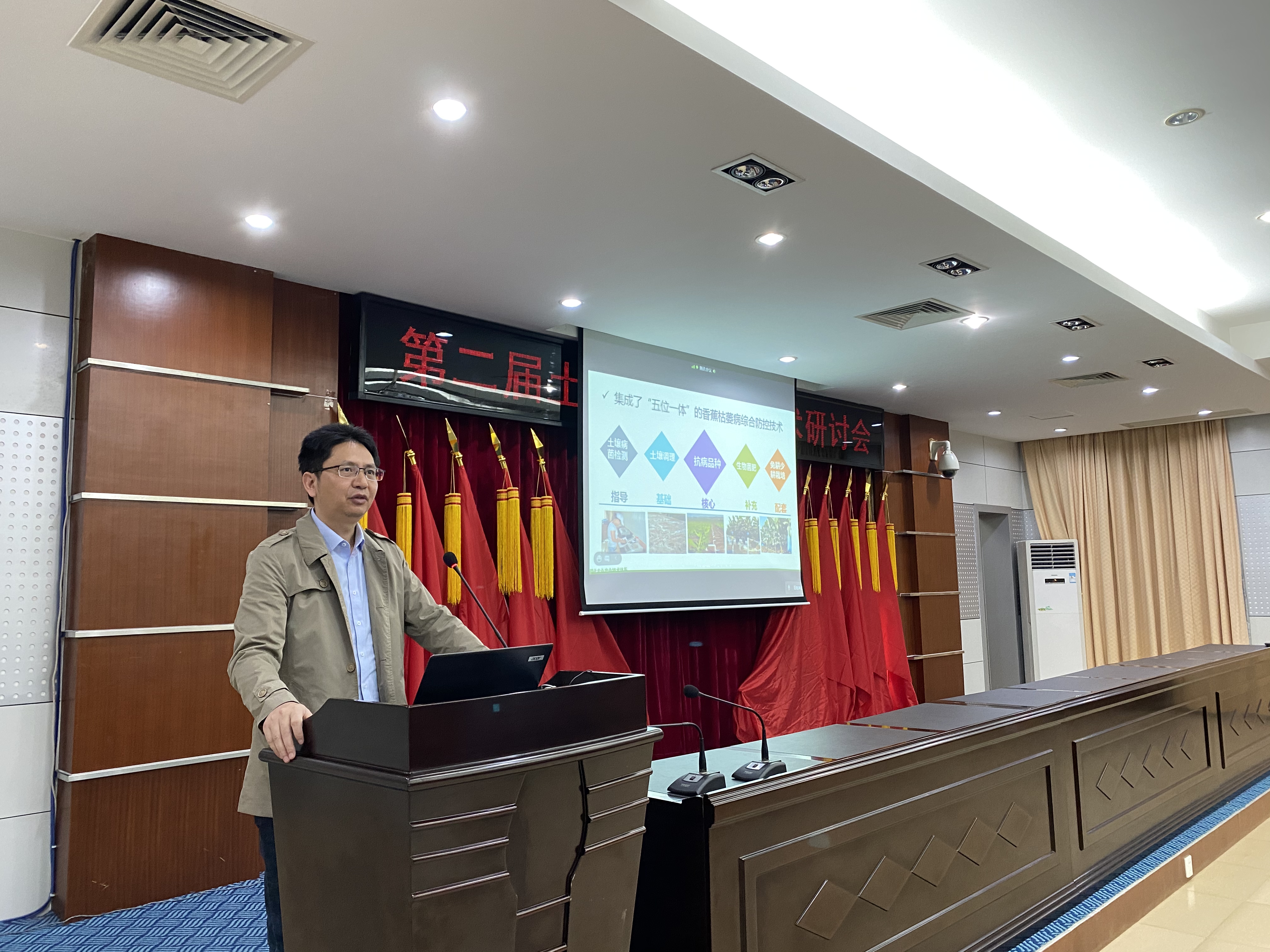主办,中国热带农业科学院香料饮料研究所承办,江苏省土壤学会青年工作委员会和海南大学热带作物学院协办。会议邀请了全国土壤生物健康研究领域优秀青年工作者以及国内相关领域专家代表参会,本次会议聚焦土壤病原微生物这一土壤-植物系统健康的重要生物威胁因子,围绕“土壤生物健康调控原理与技术”这一主题进行学术分享和热烈讨论。会议特邀南京师范大学蔡祖聪教授、中国农业大学张俊伶教授和中国热带农业科学院副院长谢江辉研究员进行大会主旨报告,30位青年学者进行了会议报告。