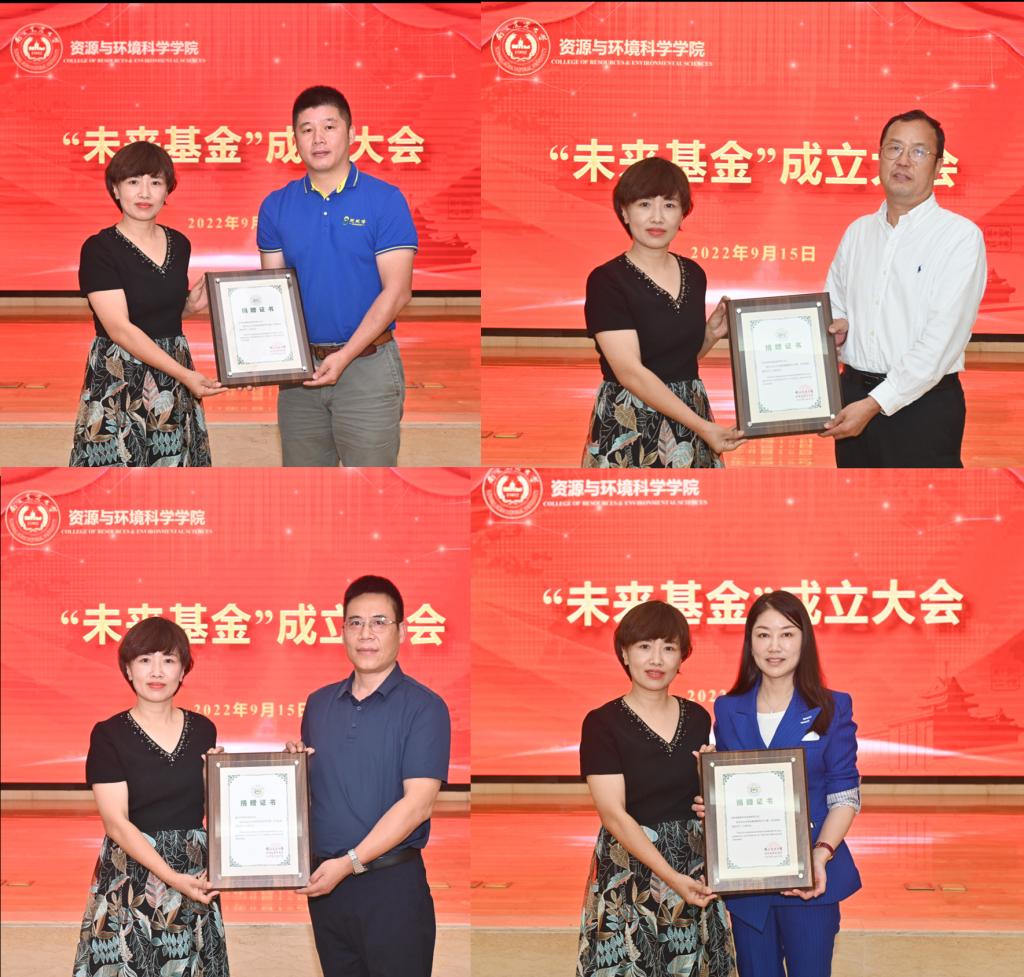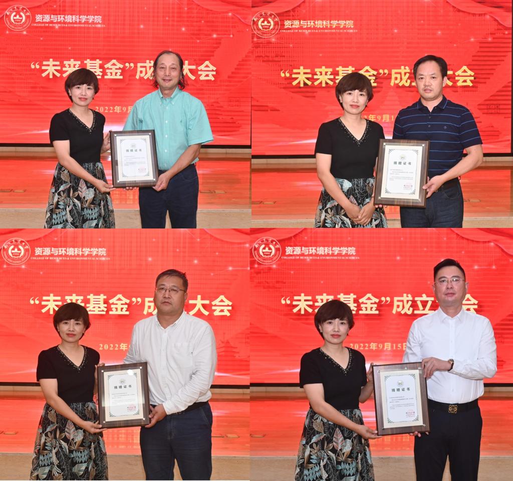院长李荣宣读了“未来基金”理事会成员名单。大会还举行了“未来基金”现场捐赠仪式。李荣代表“未来基金会”接受捐赠,校友总会办公室(教育基金会办公室)主任姚科艳向捐赠人颁发了证书。