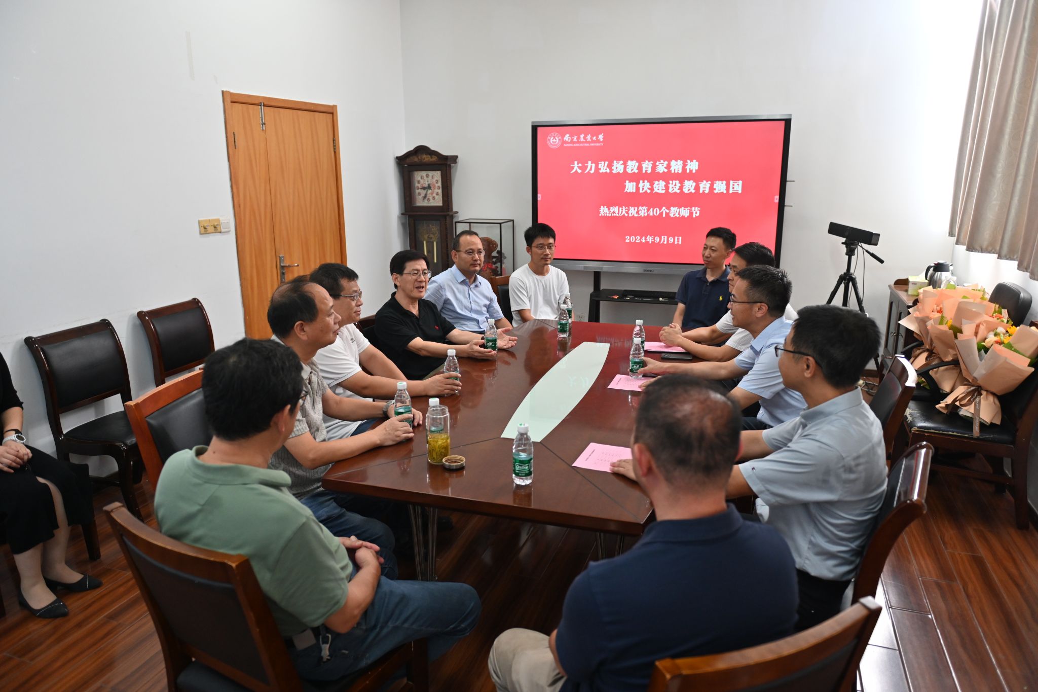 陈发棣向与会教师代表送上节日祝福,并为教师代表一一送上鲜花。座谈交流中,陈发棣对黑料网