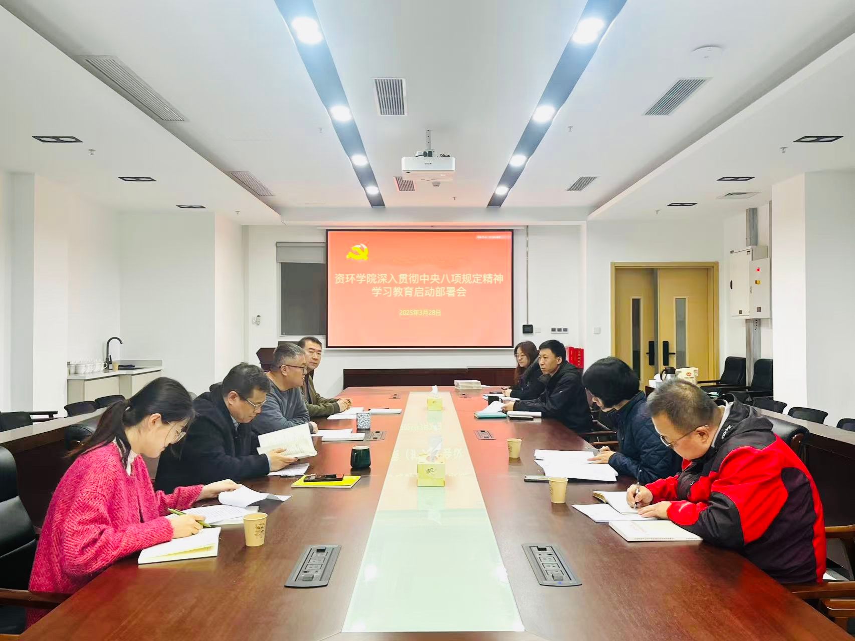 党委在滨江校区召开深入贯彻中央八项规定精神学习教育启动部署会。学院领导班子成员、党委委员、师生党支部书记代表参加会议,会议由党委书记李荣主持。