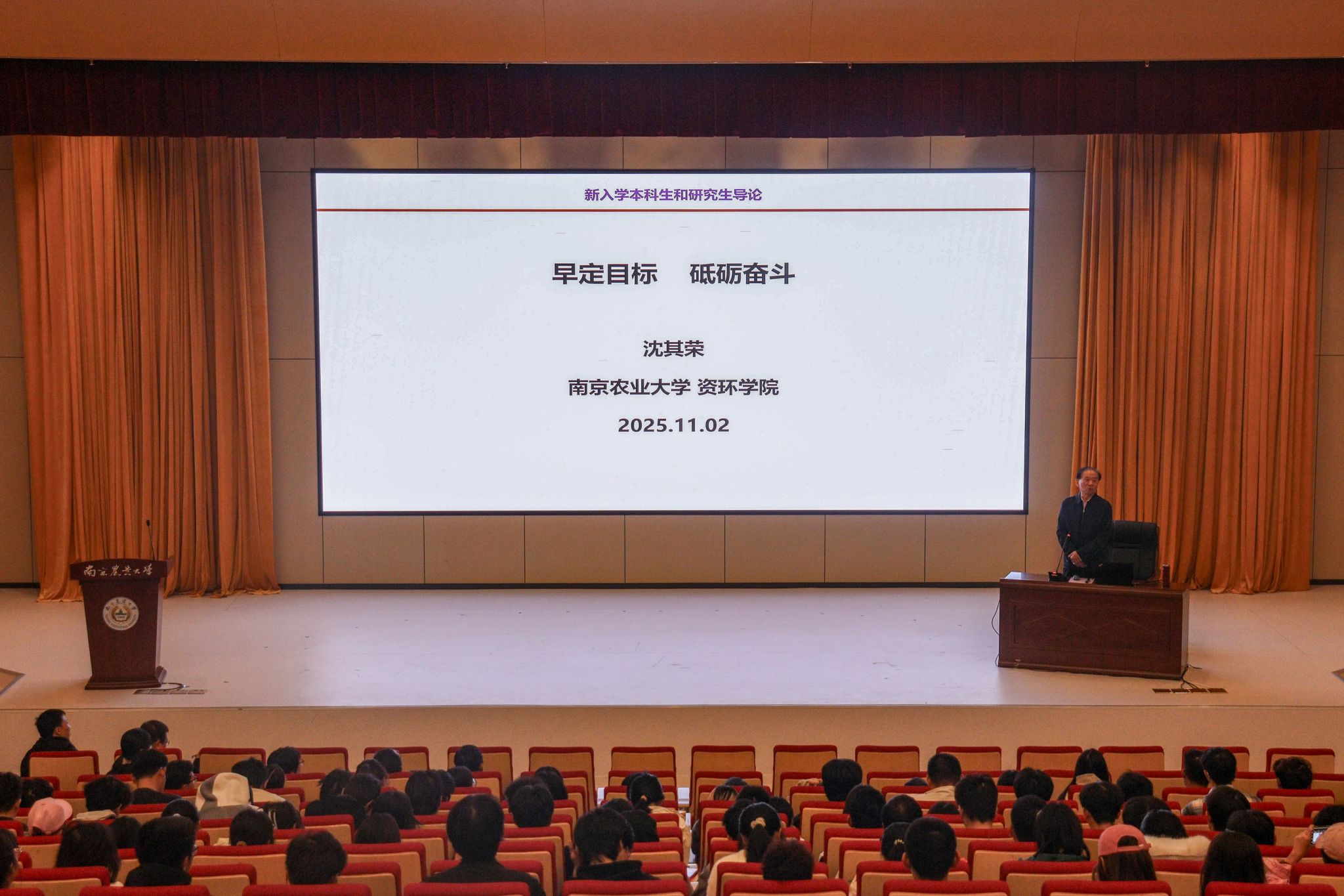2025级新生学科导论活动在滨江校区会议中心顺利举行。沈其荣院士应邀做客“未来讲堂”,与2025级全体本研新生面对面,共话学术科研与人生成长。学院副院长张旭辉主持,院长张瑞福、党委副书记孙笑逸、2025级全体新生班主任参加活动。