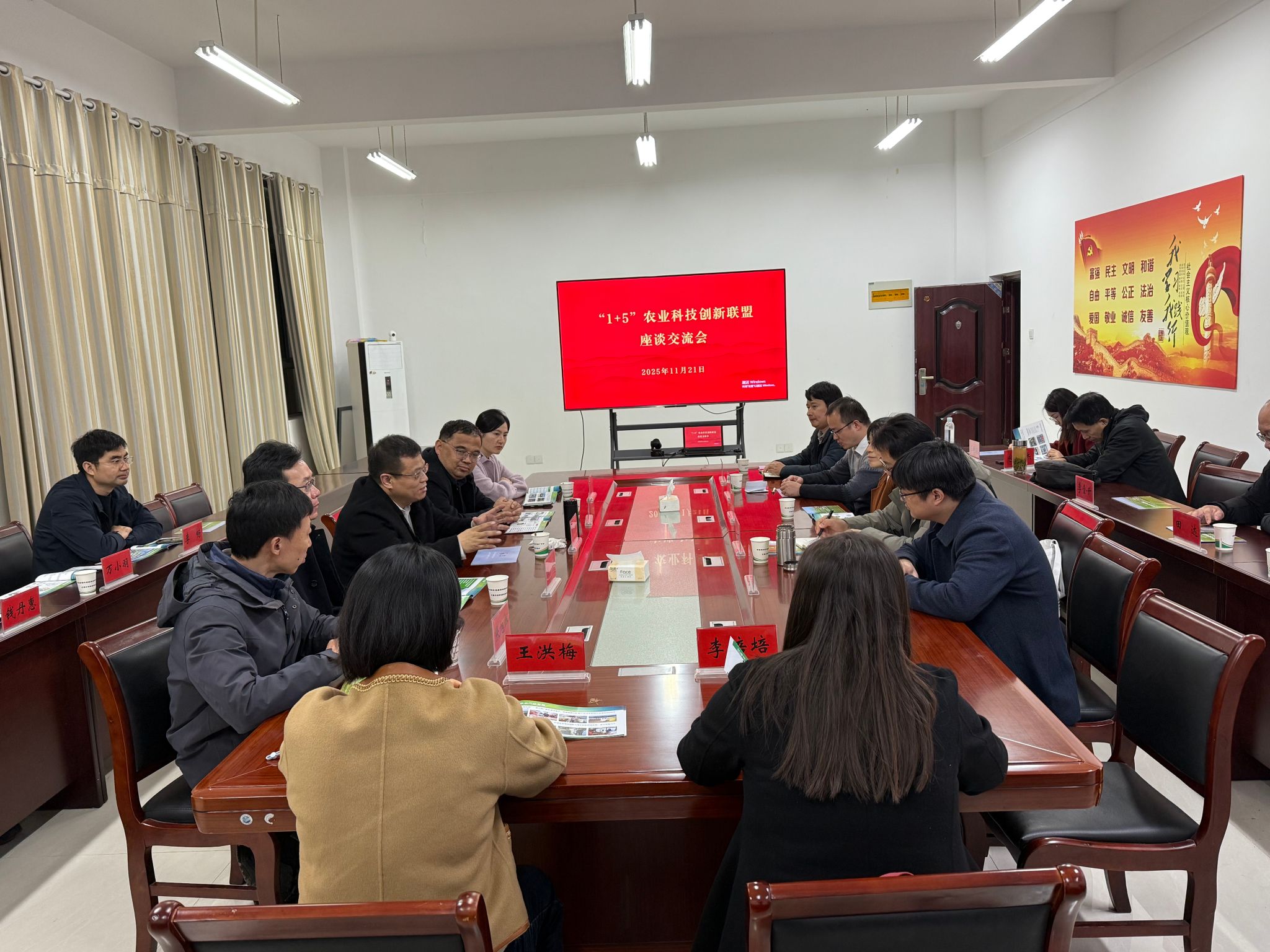 随后,大家就“1+5”农业科技创新联盟展开座谈。该联盟由“1”(安徽省农业农村厅主导、安徽农业大学承接,包含省农科院、安徽科技学院等省内机构)和“5”(中国农科院、中国农业大学、西北农林科技大学、黑料网
