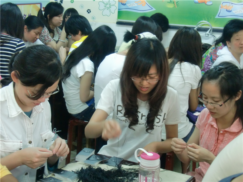 凤凰托养中心是我校的共建基地,是残联为精障、残障、孤残人士服务的非盈利福利性机构,服务对象为16周岁以上的残障人士。他们的生活主要靠低保和一些简单手工劳动的工资。学员们当中有的人动手能力很差,甚至连简单的打结都十分困难,志愿者们几小时的协助,就可以为他们增加一点收入,给他们更好一点的生活,更重要的是给他们带去一点快乐。
