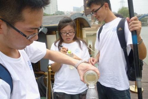 今天是资环院秦淮环保行社会实践小队活动的第一天。社会实践小队从学校出发,历经了9小时,穿越了玄武区,秦淮区,白下区,江宁区。途经外秦淮玄武湖,逸仙桥,七桥瓮等14个取水点。社会实践小队从目测、口头调查和采水样等形式,得出外秦淮在玄武湖段水质较差,在白下,江宁区域水质在逐步变好。不过实践小队在江宁某河段却发现了大量死鱼漂浮。因此,社会实践小队认为秦淮水质不容乐观。