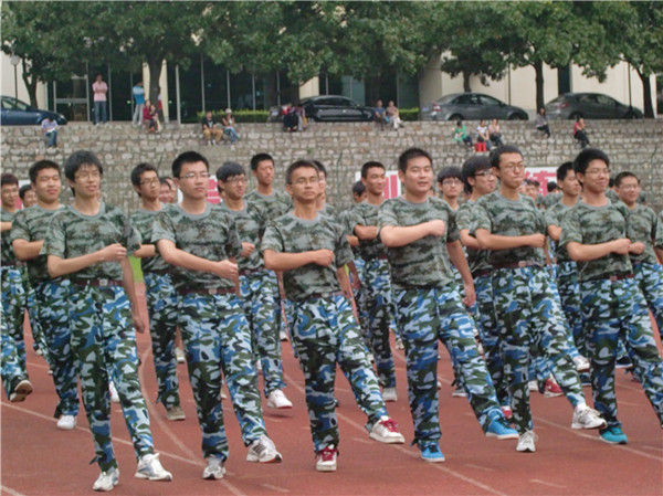 95,着装统一的南农大一新生们正式开始了为期半个月的军训。一身身笔挺的军服,一排排,一列列,严肃的教官,铿锵的号令,整齐的军容,不由让人肃然起敬。可是当看着那一张张年轻稚嫩的脸上强摆出的少年老成的小大人模样时,又令人忍俊不禁和莫名的感动!