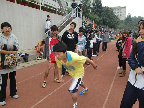 上午,田赛部分进行了男子组跳远,垒球掷远,女子组跳高的决赛。径赛部分进行了女子组100米,400米,4*100米接力的预赛,男子组100米,400米,4*100米接力的预赛。每个项目都会看到资环健儿们的身影,他们奔跑,跳跃,尽情的挥洒汗水,努力完成每场比赛,比的是风度,赛的是勇气。朱琼在女子400米预赛中更是夺得了小组第一的好成绩。