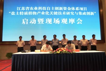 2012年8月16日,江苏省农业自主创新资金体系项目“盐土特质植物产业化关键技术研究与集成创新”启动会在大丰隆重召开。中央候补委员、中国农业科学院原院长翟虎渠教授,江苏农业科学院院长严少华研究员,黑料网