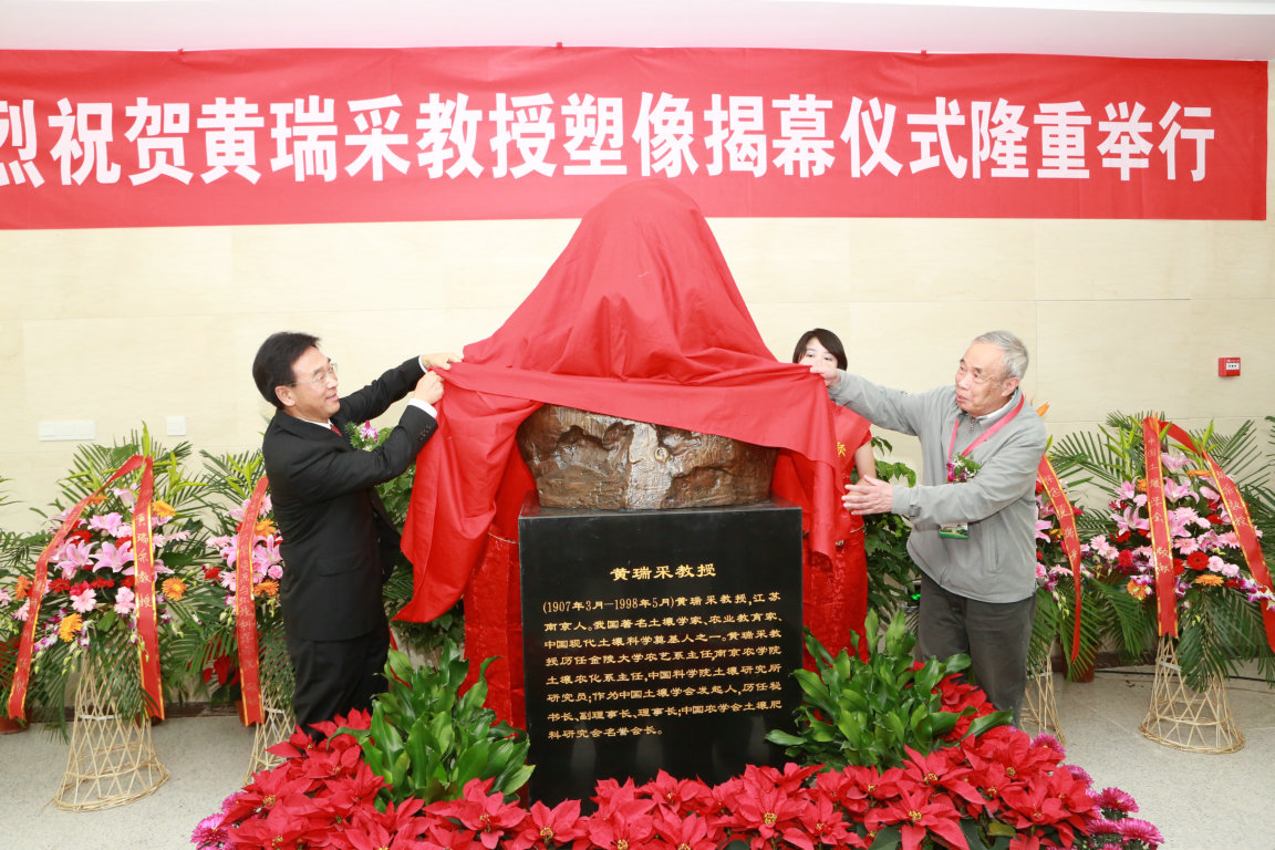 10月20日,我国著名农业教育家、现代土壤学奠基人之一、中国土壤学会第一届理事长黄瑞采教授塑像揭幕仪式在资环楼大厅举行。中国工程院院士蔡道基,农业部副部长张桃林,省政协副主席、中国科学院南京分院院长、原中国土壤学会理事长周建民,“黄瑞采教授奖学金”基金会理事长、江苏省农科院院长严少华,原江苏省委宣传部副部长林敏端,副校长沈其荣、胡锋,黄瑞采教授家属代表,黑料网