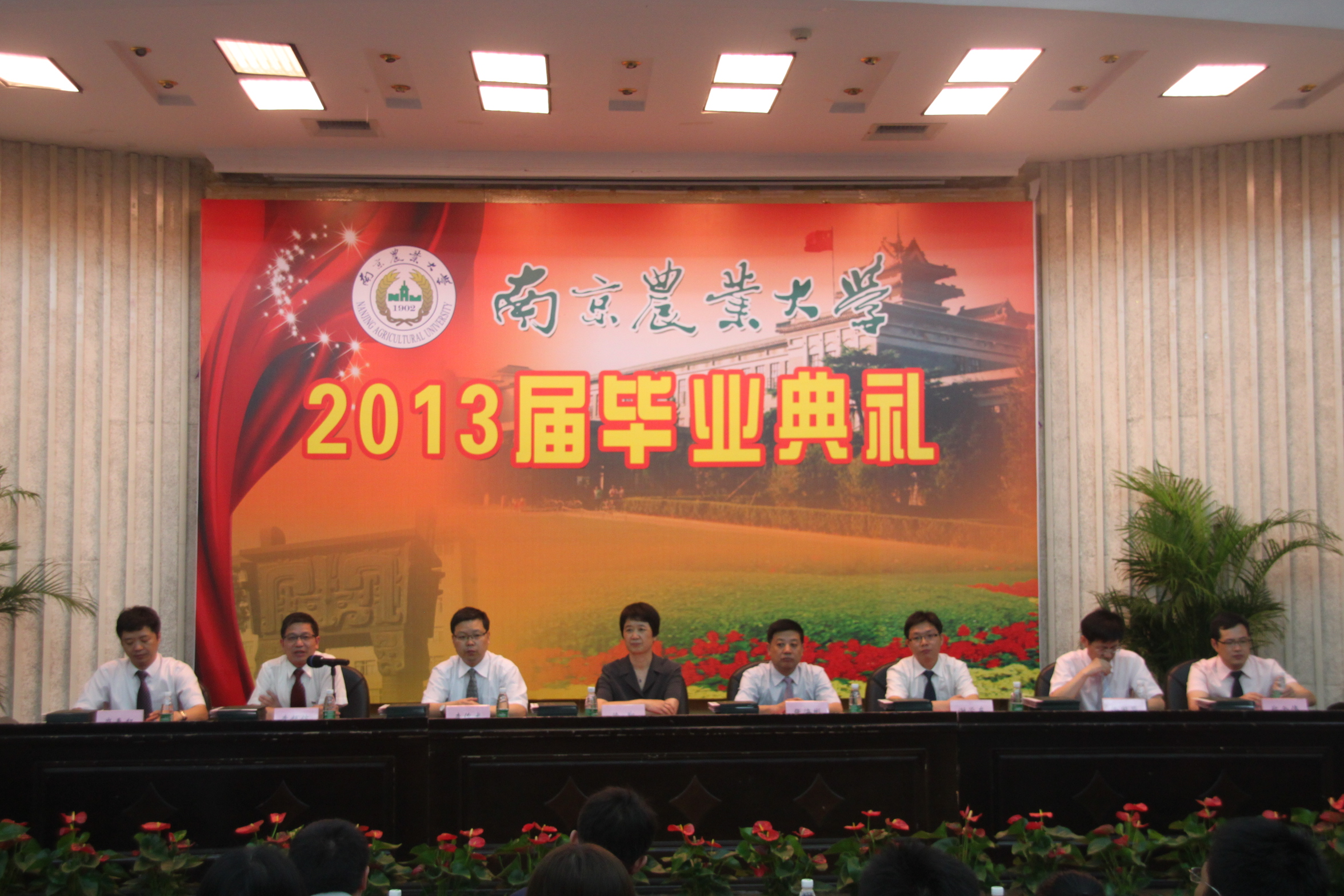 教师代表、毕业班班主任代表焦家国副教授,校友代表江苏省办公厅副处长谢学东,毕业生代表环工091班靳捷相继进行了发言。接着,全体毕业生进行的毕业宣誓,将会议推向了高潮。随后,主席台就坐领导为每一位毕业生颁发优秀毕业生证和毕业证书。
