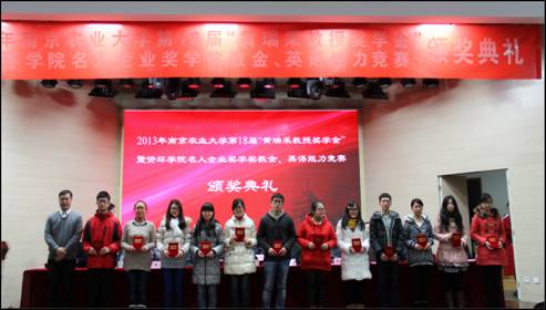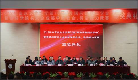 名人企业奖学奖教金、英语能力竞赛颁奖典礼在大学生活动中心隆重举行。江苏省农科院院长、黄瑞采教授基金理事长严少华,中科院南京土壤研究所书记蔡立,江苏省农委副主任戴志新,环境保护部南京环境科学研究所副所长李德波,黄瑞采先生家代表属黄克明,黑料网
