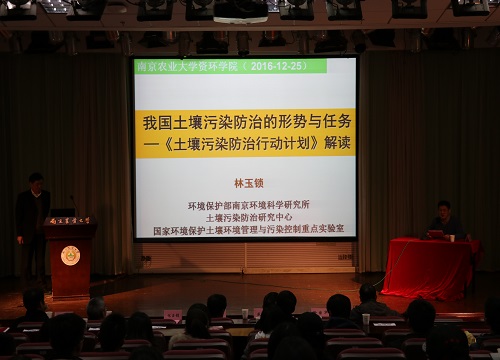 优秀学子带来了“我国土壤污染物防治的形势与任务”学术报告。林玉锁研究员从“土壤环境功能”、“我国土壤污染特征”、“土壤污染防治策略”、“《土十条》内容解读”四个方面展开,对《土壤污染防治行动计划》做了详尽的解读。