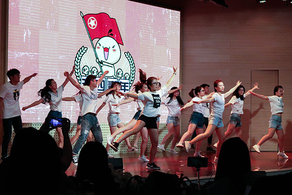 环工131以舞蹈《咖喱咖喱》甜美开场,突然,穿裙子的“小姐姐”们上场跳起了《你干嘛!》,反串形式瞬间引爆全场气氛,之后环科132的“学姐”们也跳了“萌萌哒”的舞蹈,全场掌声雷动。