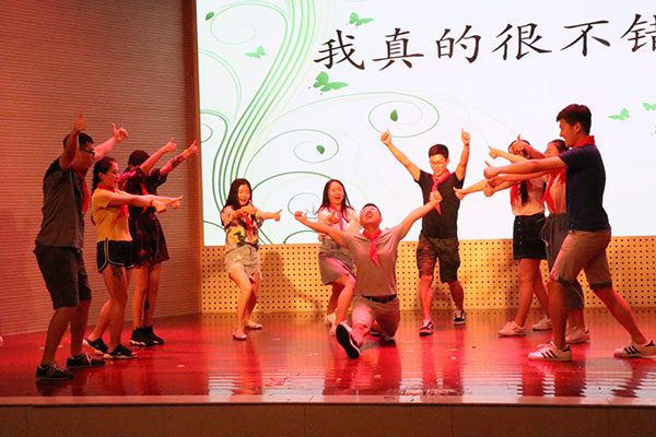 在中场的游戏环节过后,崔书记和辅导员老师们深情合唱他们自己改编的《资环的你》:“老师们永不会忘记,调皮爱耍酷的你;我也会时不时想起,勤奋又努力的你。”“凝聚思想微光,我们资环棒棒,资环会一直等着你!”看着台上的老师们,大家回忆不停翻涌,是啊,