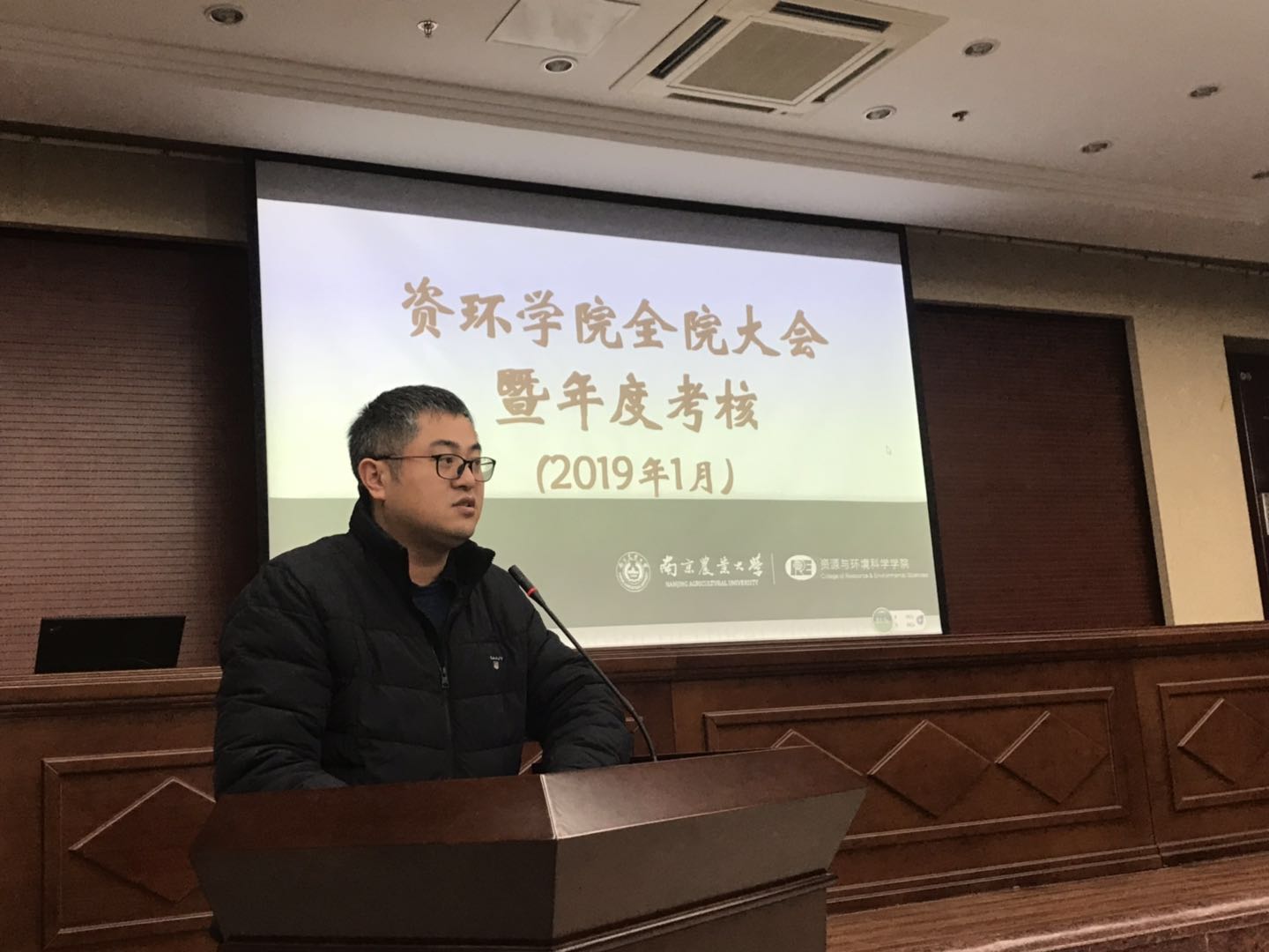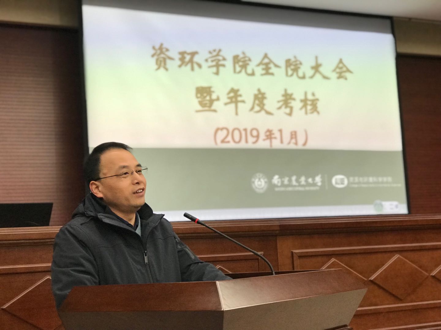 邹建文对全体教职员工过去一年为学院做出的贡献表示肯定。他介绍了学院近期几项基础设施建设的进展。他表示,学院会尽最大努力为科研工作创造良好的工作环境。他重点强调了2019年自然科学基金的申报工作,并就学术诚信问题提出了明确要求。