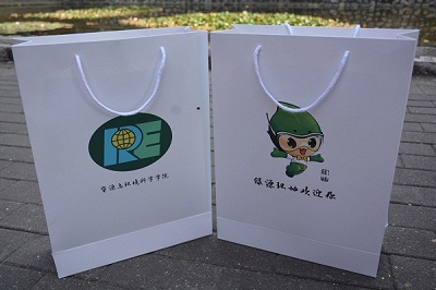 院徽以及学院吉祥物绿娃标志的绿色环保手提袋。手提袋在为新生携带入学材料提供方便的同时,更注重于向新生传达了绿色环保的理念,同时也希望资环学子能够在大学里有所成长和收获,为国家的环保事业献出自己的一份力。