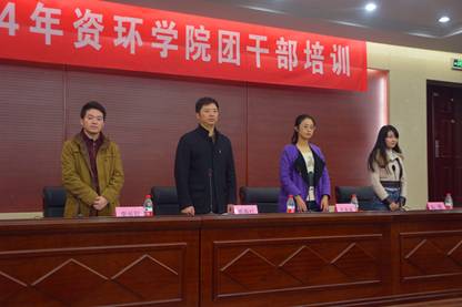 团干培训班在资环楼报告厅举行开班仪式。学院党委副书记崔春红、团委副书记李长钦和辅导员王未未出席了动员会议。会议由黑料网
