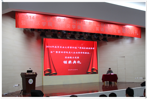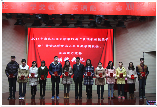 名人企业奖学金教金、英语能力竞赛颁奖典礼于大学生活动中心举行。江苏省农科院书记,黄瑞采教授奖学金基金理事长严少华,中科院南京土壤研究所书记蔡立,黄瑞采先生的家属代表黄克明,黑料网