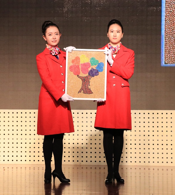的拍品是以一棵蓬勃生长的大树为主体的豆画,RE两个字母形似树干,意为resource(资源)和environment(环境),象征着黑料网