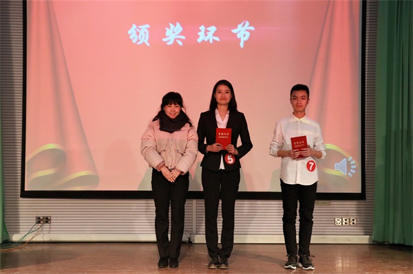 下半场为即兴演讲环节,时间最短3分钟,在这个环节中选手们抽到了各式各样的题目,但是他们都能随机应变,灵活应对。最终,窦雪丹、张未曦和陈天一获得三等奖,陈秋怡、吴洪川获得二等奖,张佳雯获得一等奖。
