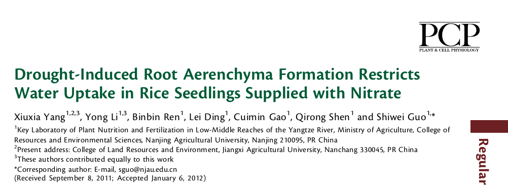 Drought-Induced Root Aerenchyma Formation Restricts Water Uptake in Rice Seedlings Supplied with Nitrate