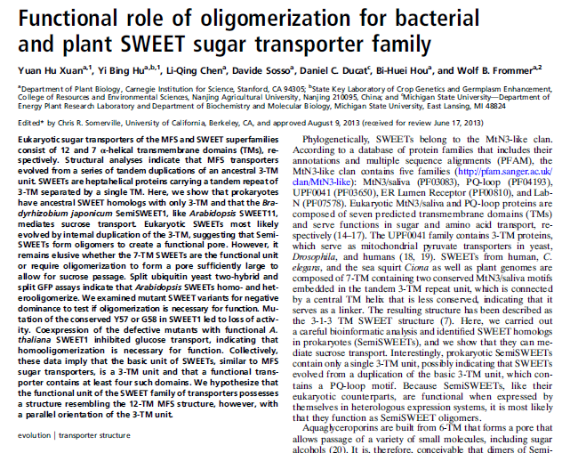 下一篇:Functional role of oligomerization for bacterialand plant SWEET sugar transporter family