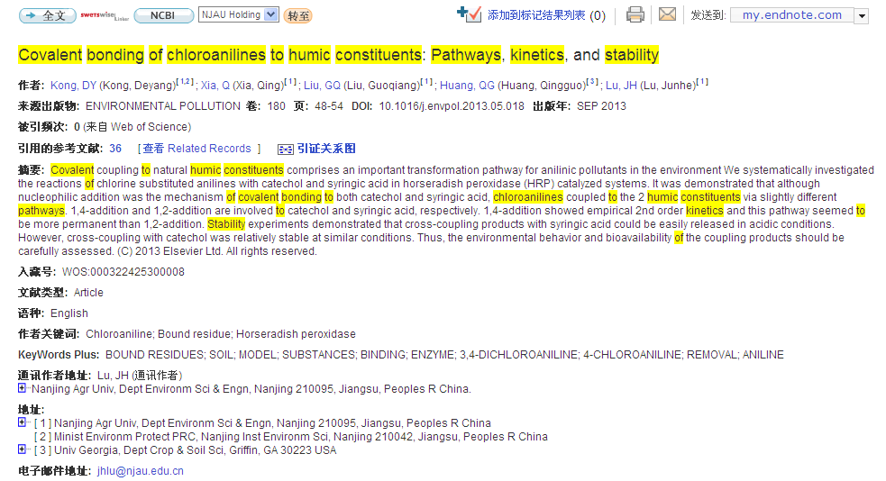 Covalent bonding of chloroanilines to humic constituents: Pathways, kinetics, and stability