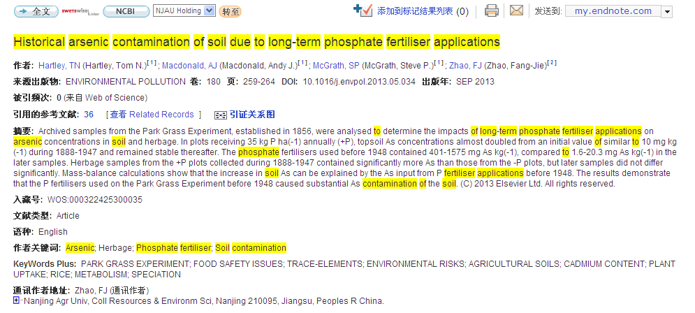 Historical arsenic contamination of soil due to long-term phosphate fertiliser applications