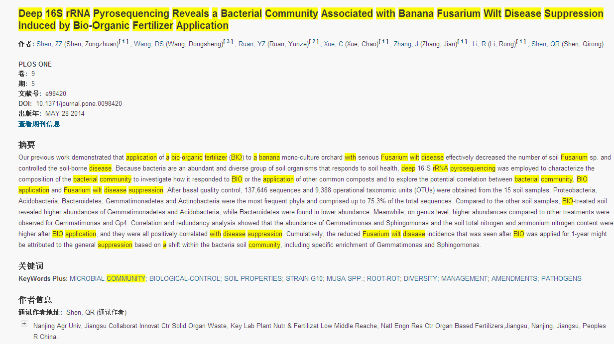 下一篇:Deep 16S rRNA Pyrosequencing Reveals a Bacterial Community Associated with Banana Fusarium Wilt Disease Suppression Induced by Bio-Organic Fertilizer Application