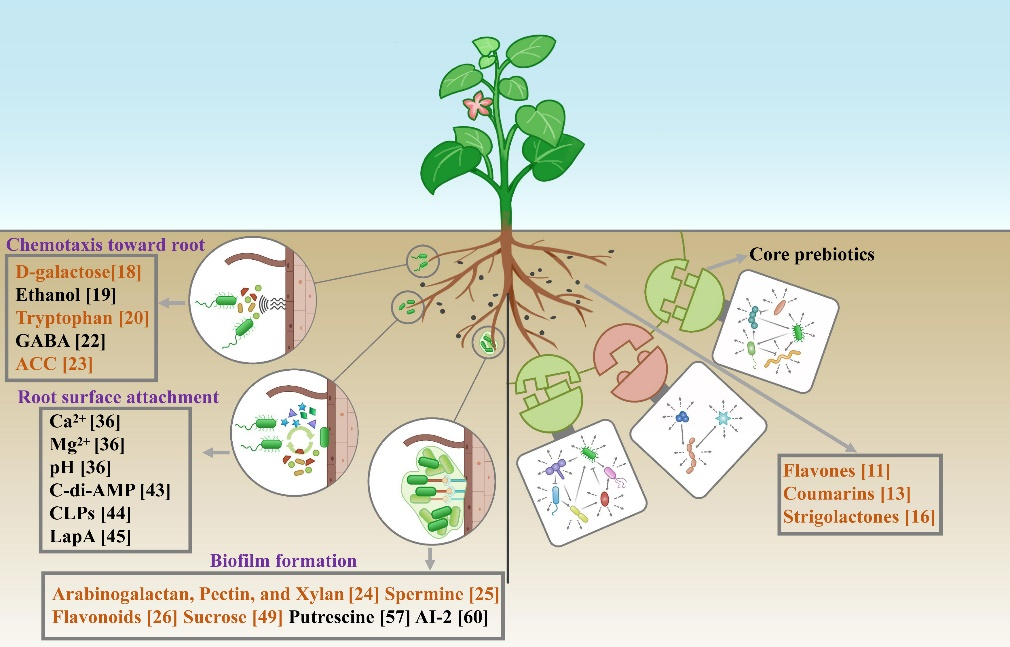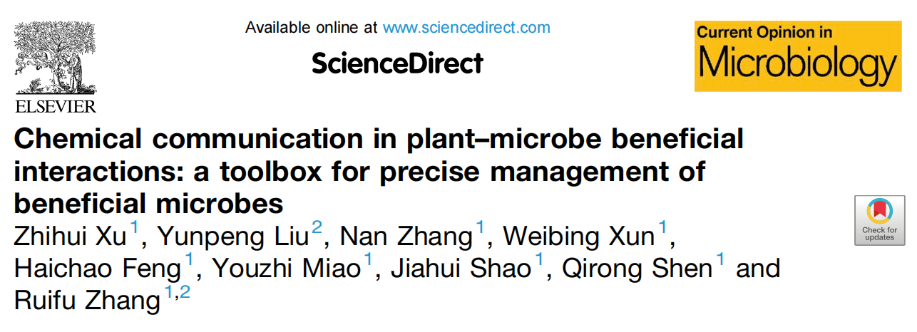 根际微生物被看作作物的第二基因组,对植物生长、养分吸收、健康和逆境适应发挥重要作用,因此精准“操控”根际益生菌对农业绿色发展至关重要。农历大年三十,微生物学权威杂志《Current Opinion in Microbiology》在线发表题为“Chemical communication in plant-microbe beneficial interactions: a toolbox for precise management of beneficial microbes”的特邀综述论文,文章系统总结了在植物-根际益生菌互作过程中调控微生物丰度、行为、功能以及植物免疫响应的信号分子或蛋白,为根际益生菌的高效利用、微生物肥料增效剂的开发提供理论基础。