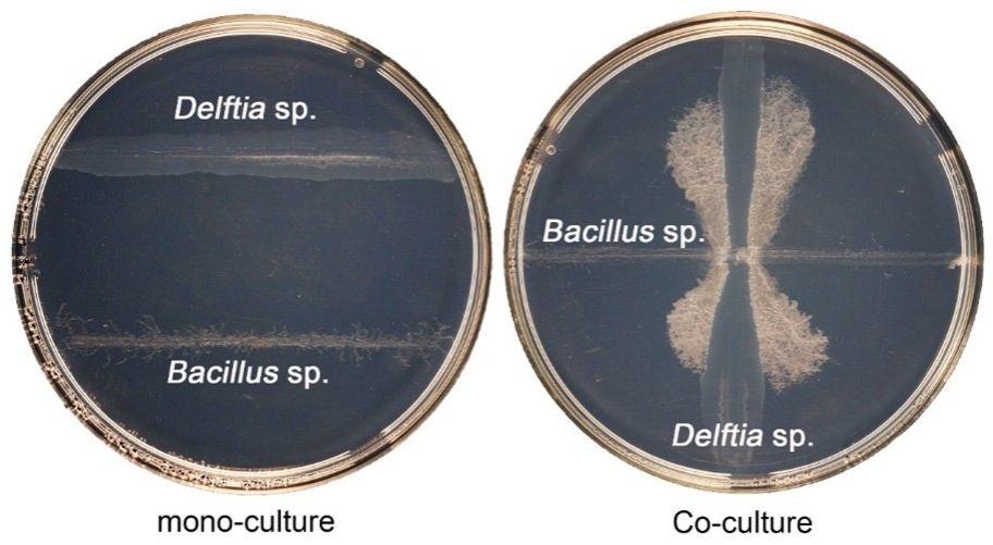 图1. Bacillus sp.和Delftia sp.的生长相互作用
