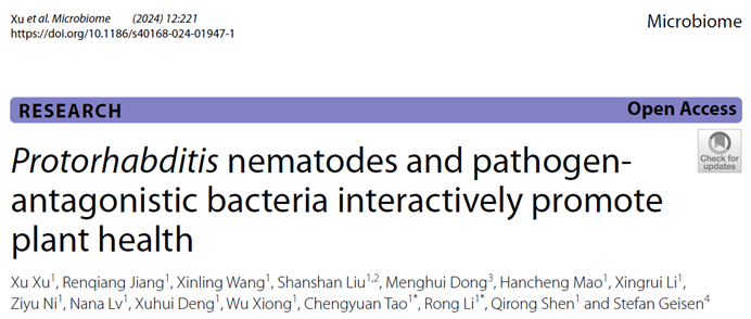 近日,沈其荣院士团队李荣课题组在生物有机肥调控土壤微食物网促进作物健康机理研究方面取得重要进展,成果以《Protorhabditis nematodes and pathogen-antagonistic bacteria interactively promote plant health》为题发表于国际学术期刊《Microbiome》。该研究深入解析了施用生物有机肥诱导的健康土壤食物网特征,揭示了土壤动物(食细菌线虫)通过调控植物根际微生物群落组装发挥抑制青枯病病原菌功能的作用机理,并阐明了食细菌线虫与拮抗性细菌间协同抑制土传病害的具体机制。