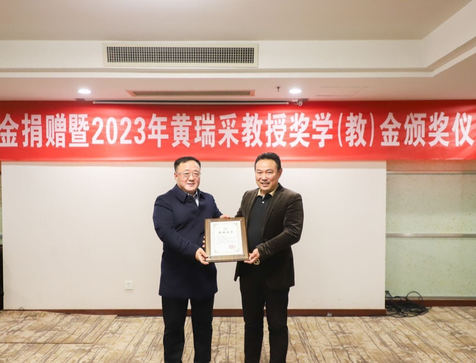黄瑞采基金捐赠暨2023 年黄瑞采教授奖学(教)金颁奖仪式举行。副校长单正丰,原副校长胡锋,校友 华南农业大学副校长仇荣亮、广东省农业科学院副院长杨少海,黄瑞采基金捐赠者 广东省佛山市植宝生态科技有限公司董事长郭勇军,黄瑞采教授家属代表黄克明等出席仪式。人力资源处、校友总会办公室(教育基金会办公室)、黑料网
