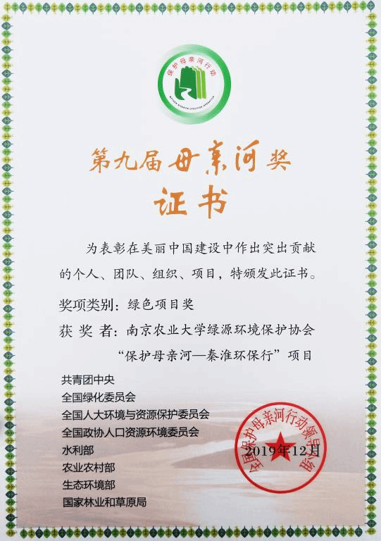 开展的“保护母亲河-秦淮环保行”项目脱颖而出,荣获绿色项目奖。